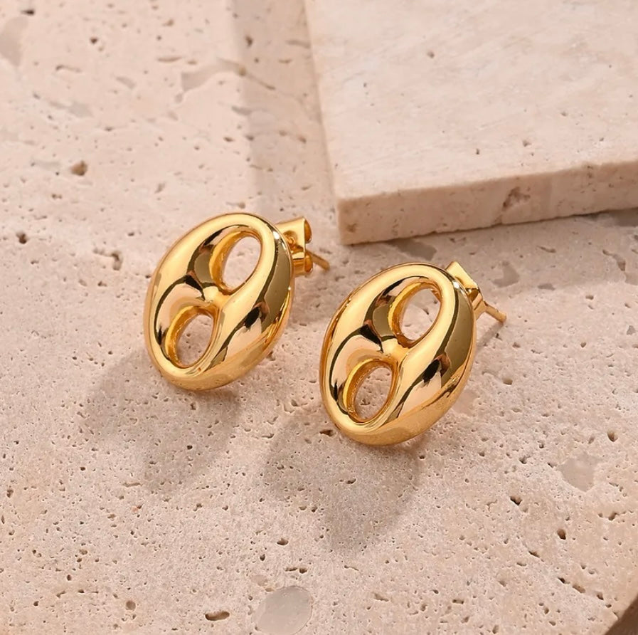 Las Pantallas Catalina son un clásico reinventado. Inspiradas en el tradicional diseño de grano de café, destacan por su acabado dorado pulido que aporta brillo y elegancia en cada detalle. Elaboradas en acero inoxidable 304 con recubrimiento en oro de 18 quilates, son resistentes al agua y al deslustre, garantizando durabilidad y estilo atemporal.