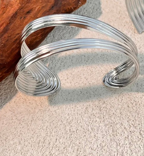 Su diseño es ajustable, lo que garantiza un calce cómodo y adaptable a cualquier muñeca. Perfecta para llevar sola como pieza protagonista o combinada con otras pulseras para un look moderno y audaz.