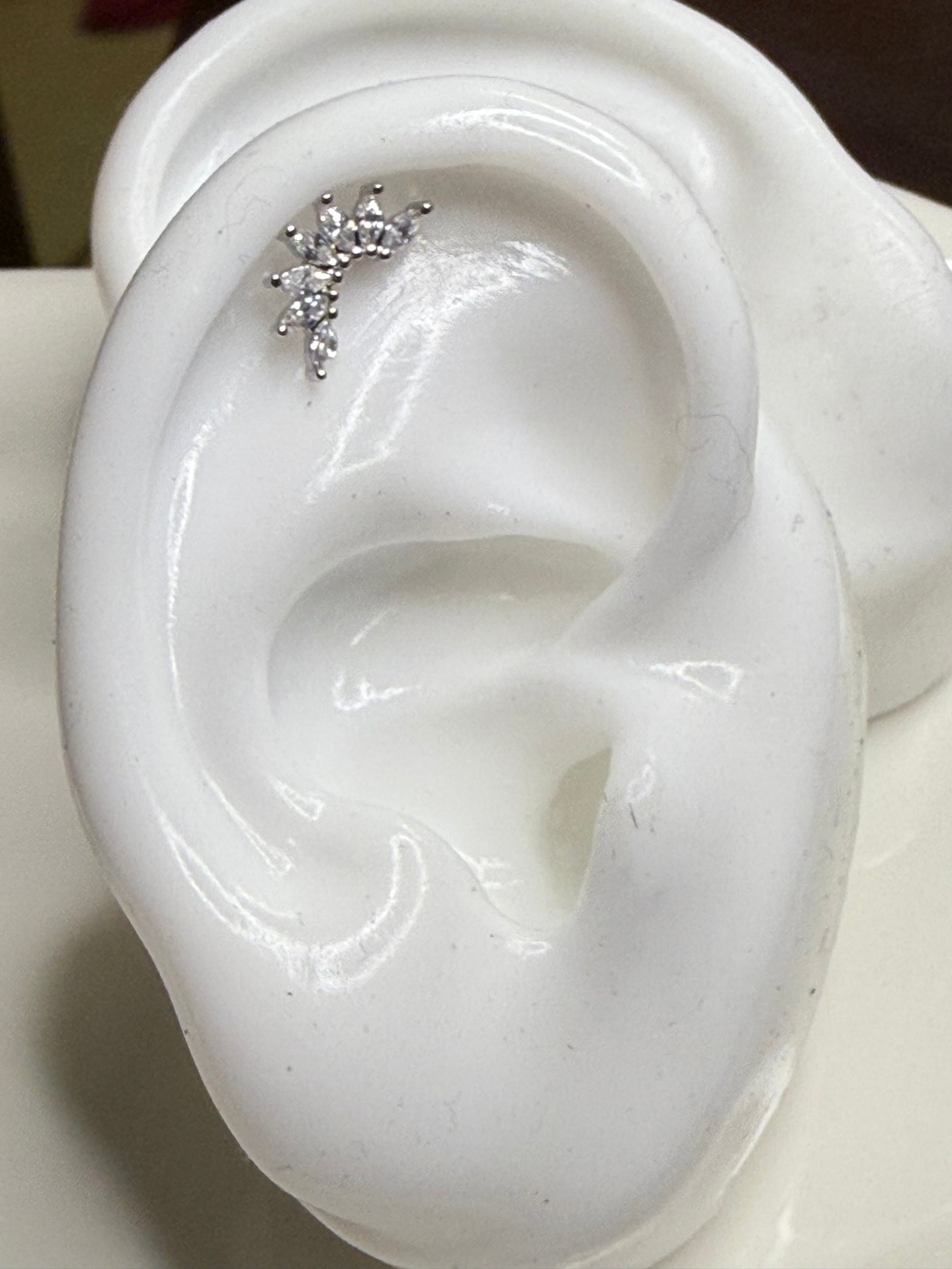 El Piercing Luzia es un delicado accesorio que ilumina tu estilo con su diseño de circonias en forma de pequeñas hojas brillantes. Elegante y moderno, está elaborado en acero inoxidable 316L de alta calidad, lo que lo hace resistente al agua y al deslustre.