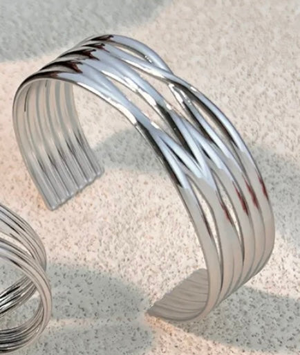 Un diseño único que combina modernidad y delicadeza. Su acabado plateado entrelazado refleja la luz con un brillo sutil que enamora. Ajustable para adaptarse perfectamente a tu muñeca, es la pieza ideal para realzar tu estilo con un toque sofisticado y versátil.