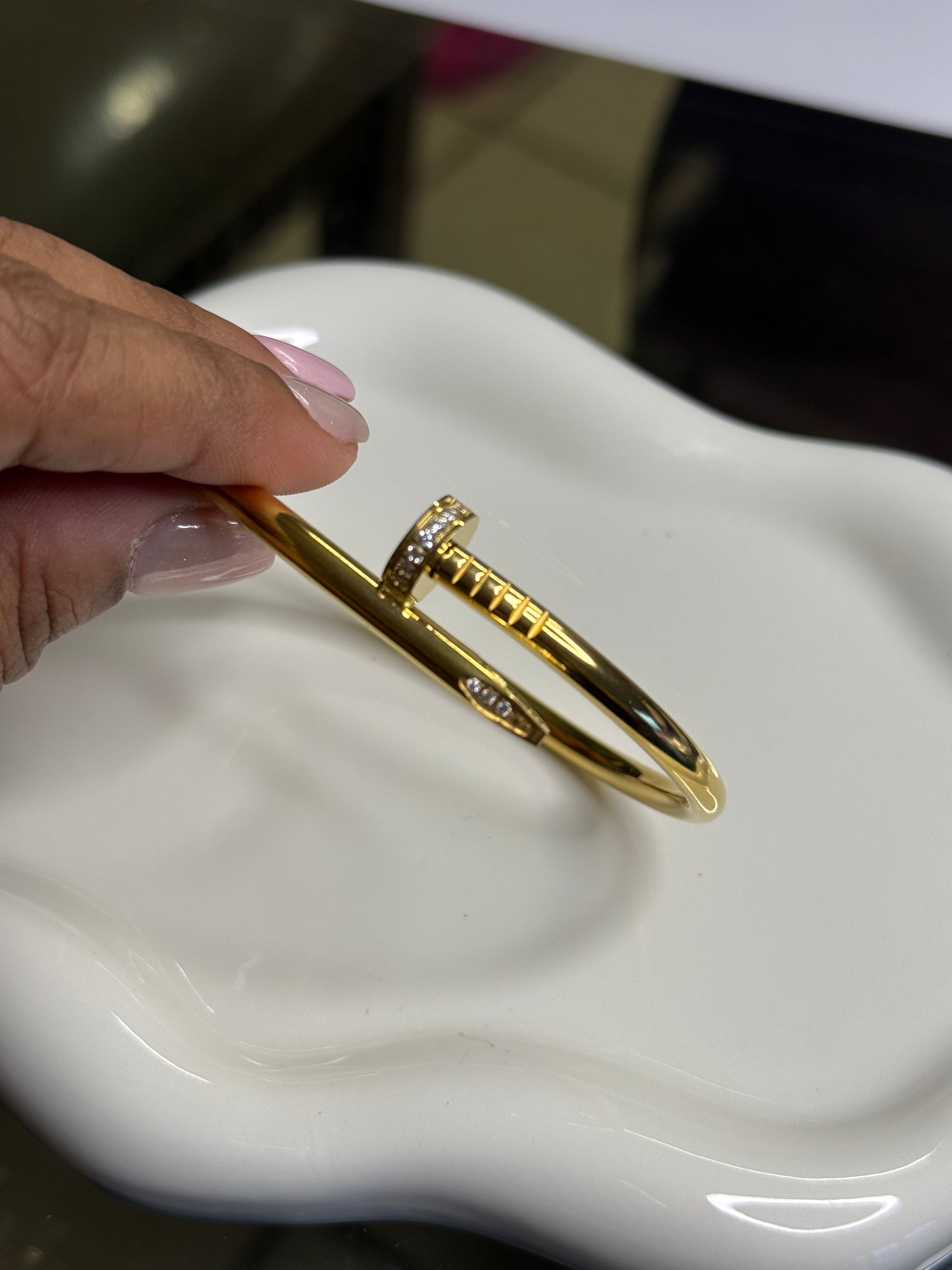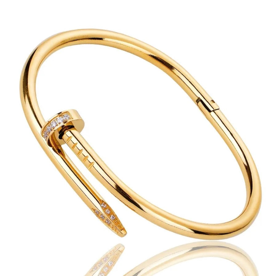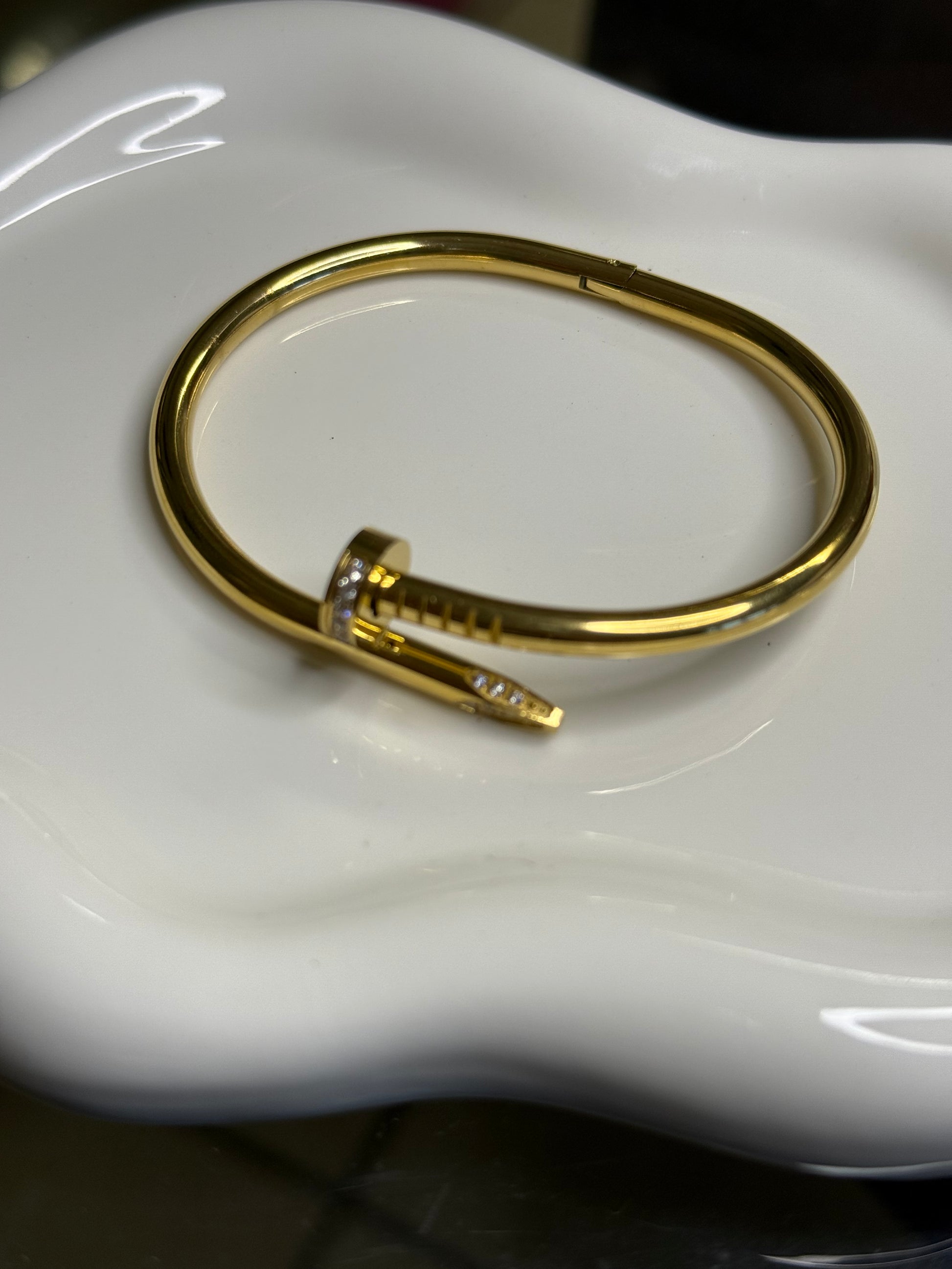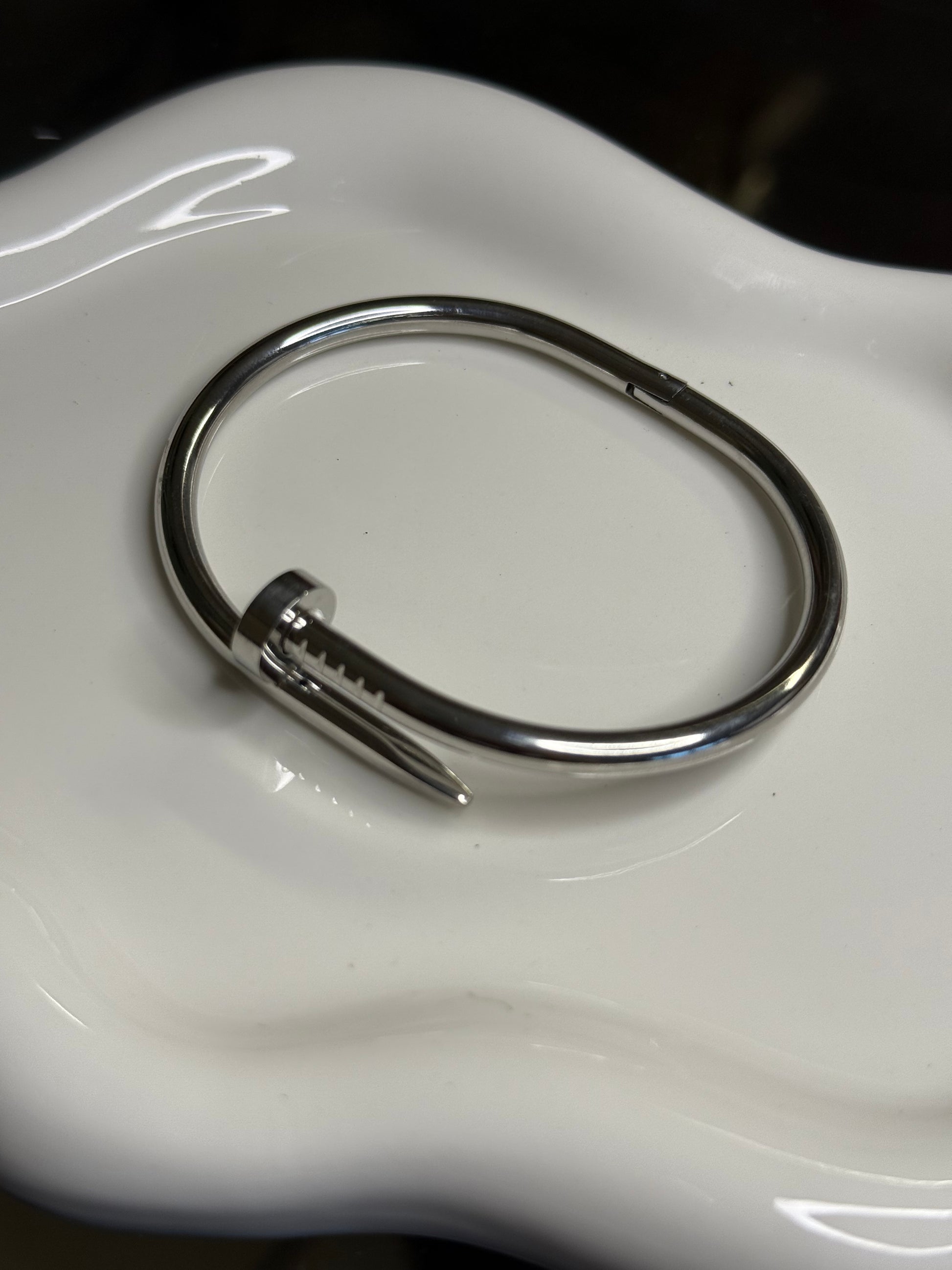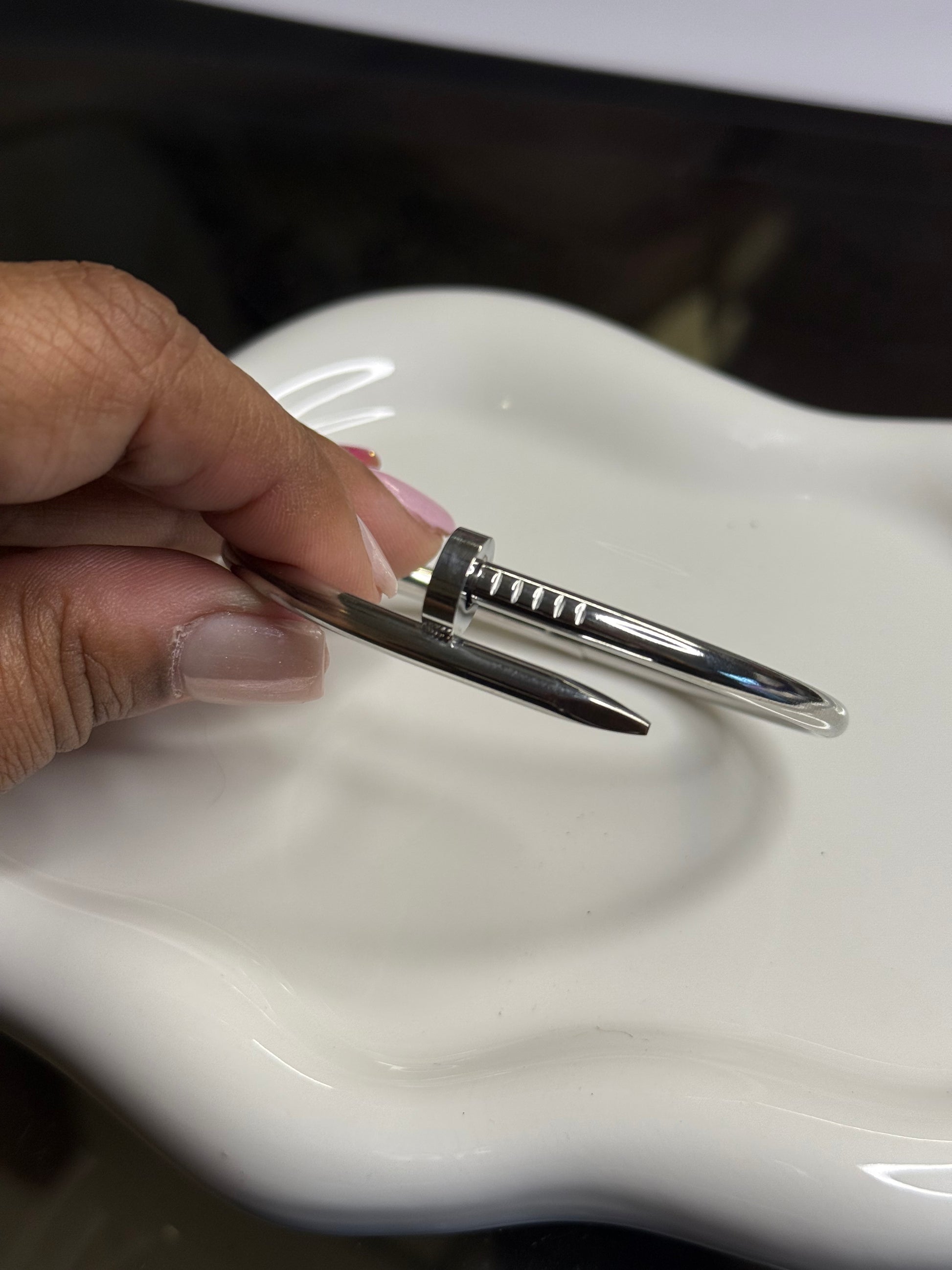 El Brazalete Valentina es sinónimo de fuerza y sofisticación. Con un diseño moderno inspirado en un clavo, esta pieza combina elegancia y carácter, ideal para mujeres que buscan un accesorio diferente y lleno de estilo.